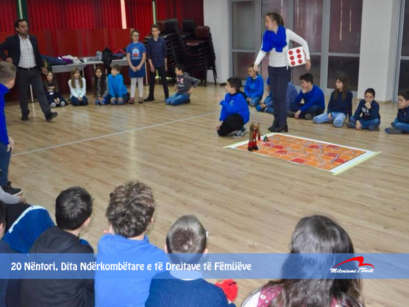 20 Nëntori është shënuar në kalendar si “Dita Ndërkombëtare e të Drejtave të Fëmijëve”. Përcaktimi i kësaj dite ka marrë shkas nga Konventa për të drejtat e fëmijëve, e miratuar nga Asambleja e Përgjithshme e Kombeve të Bashkuara në 20 Nëntor 1989. Kjo ditë ka për qëllim të jetë ditë aktivitetesh për të promovuar idealet dhe objektivat e Kartës për të Drejtat e Fëmijëve si dhe mirëqenien e fëmijëve të botës. Klasat e pesta këtë ditë e shënuan me aktivitete të ndryshme, të organizuar nga prindi i klasës V-1, z.Petrit Tahiri. Falënderojmë prindin z. Petrit Tahiri për aktivitetet kreative të cilat i zhvilloji me nxënësit.