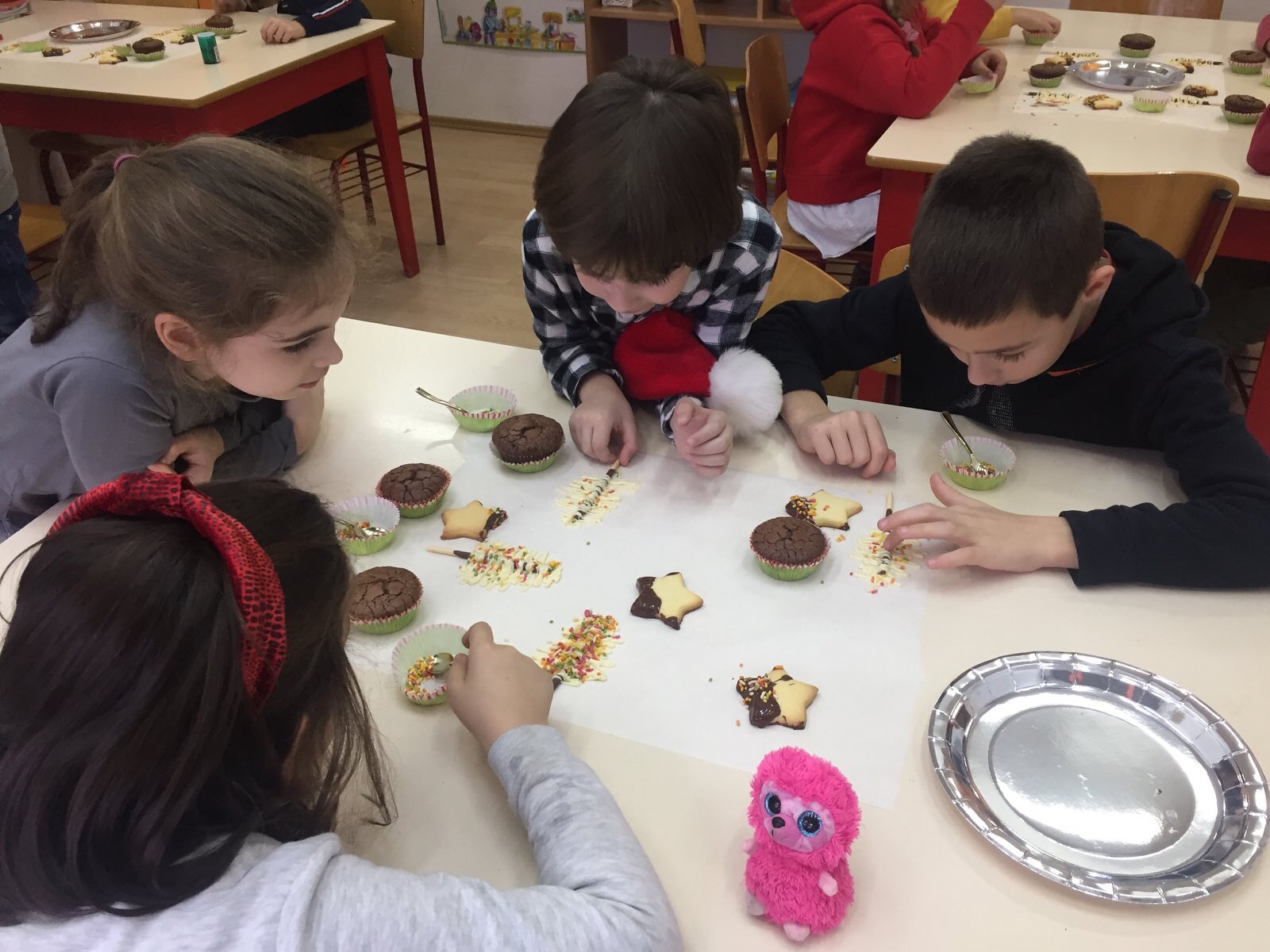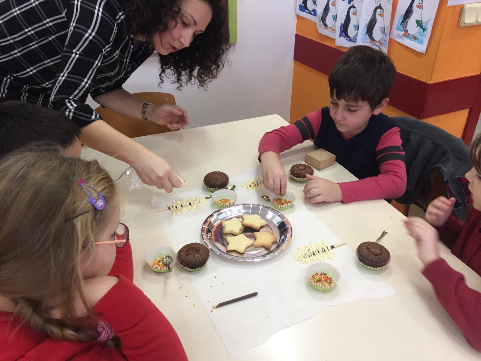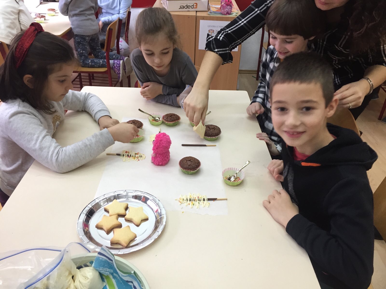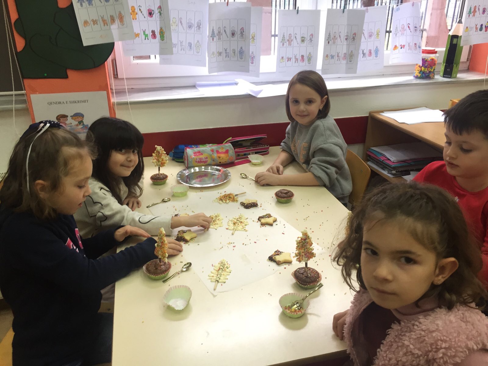 Një ditë e veçantë dhe përplot me befasi të lezetshme, ishte padyshim sot për nxënësit e klasës I -2. Këtë befasi të këndshme dhe atraktive na e solli në klasë prindi i klasës znj. Zhaklina Blakaj përmes gatimeve të saj të veçanta. Znj. Blakaj, për nder të Festave të Fundvitit, përgatiti së bashku me nxënësit bredha dekorativë dhe biskota me çokollatë. Nxënësit gjatë gjithë kohës ishin ndihmues dhe njëkohësisht u argëtuan pa masë.