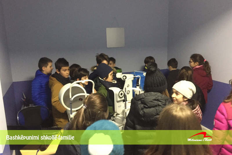 Bashkëpunimi shkollë-familje është ndër dimensionet më të rëndësishme të shkollës sonë. Prindërit e nxënësve, me gjithë angazhimet që kanë, vazhdimisht gjejnë kohë që të kontribuojnë në aktivitete të ndryshme edukativo-arsimore. Ishte z. Arton Kubati (prind i nxënëses Andra Kubati), që mori iniciativën dhe organizoi vizitën tonë në Qendrën Laserike të Syrit “Kubati”. Ne, përveç që pamë nga afër punën e okulistit dhe mjetet për kontrollimin e syve, në “Kubati” na u ofrua mundësia që të kontrollohemi detajisht, një nga një. Përveç këtyre, ligjërata nga z. Arton për kujdesin ndaj syve na ofroi informata të cilat ne do t’i ruajmë si “vathë ne vesh”. Mirënjohje dhe falenderim i pafund për gjithë punonjësit e kësaj qendre për mikpritjen dhe dashamirësinë.