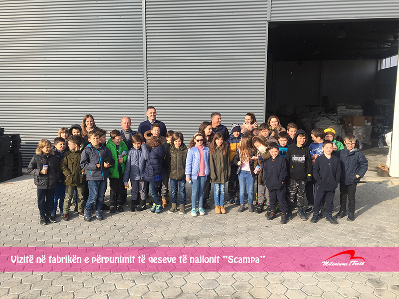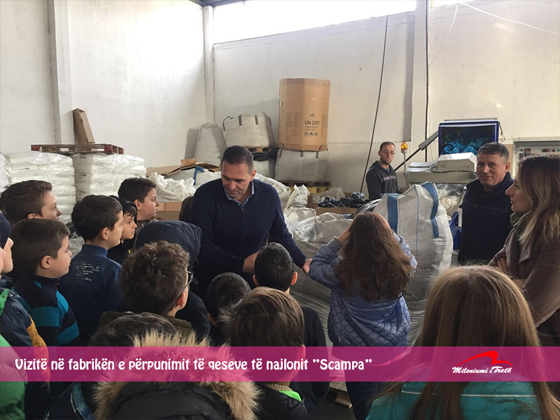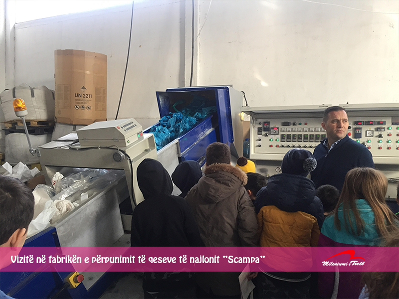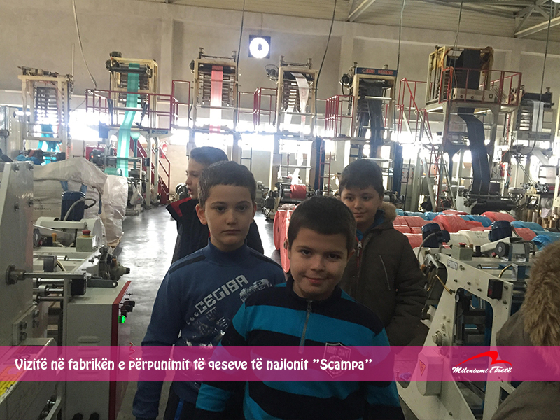 Nxënësit e klasave të katërta u njohën për së afërmi me pajisjet të cilat përpunojnë dhe riciklojnë qeset e najlonit, ky proces realizohet në fabrikën “Scampa” në Parkun e Biznesit në Drenas, të z. Kujtim Gjevori, daja i nxënëses Riga Hatipi.