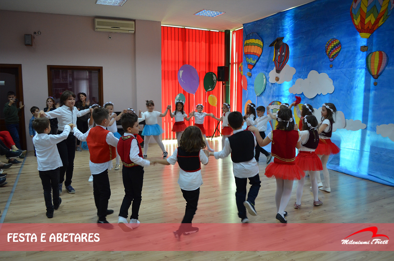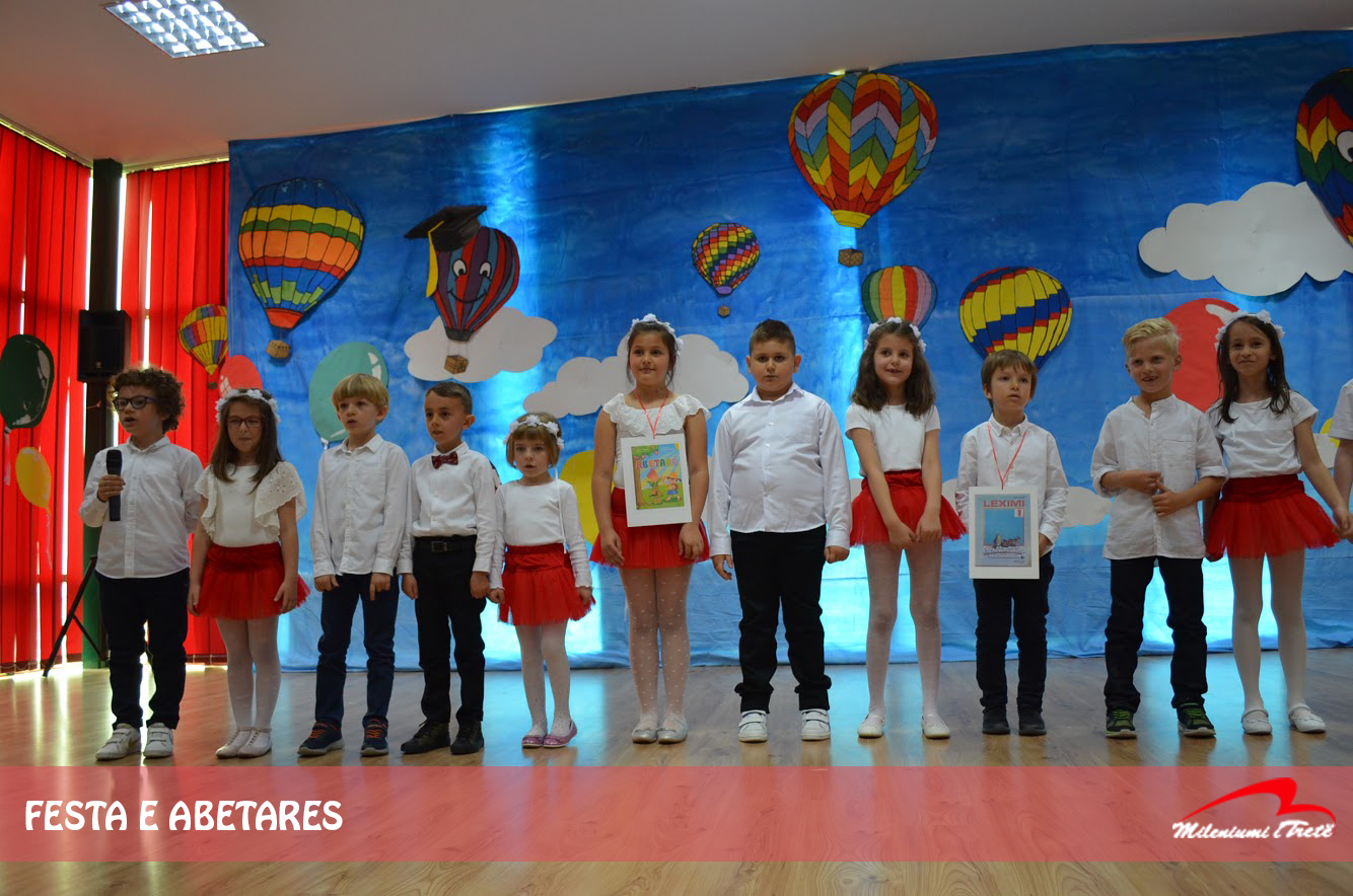 Ne u veshëm me ngjyrat më të bukura për të nderuar përkushtimin e familjarëve tanë, shkollën që e vijojmë e mbi të gjitha Abetaren e cila s’rreshti asnjëherë për të na e lehtësuar mësimin e gjuhës sonë të bukur.