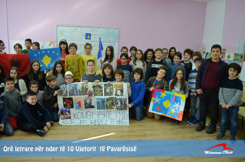 Klasat e pesta mbajtën orë letrare për nder të 10 Vjetorit të Pavarësisë. Nxënësit shkruan poezi, ese, tregime për shtetin tonë dhe me shumë dashuri ata lexuan para shokëve dhe shoqeve të gjeneratës. Ora letrare u përmbyll më një ekspozitë të punuar nga nxënësit me porosinë: KOMBI ËSHTË I MADH KUR JEP NJERËZ TË MËDHENJ