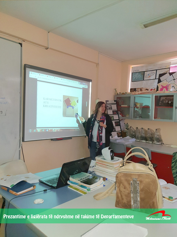 “Kreativiteti në matematikë” ishte tema të cilën e prezantuan Florije Aliçkaj dhe Jeta Kingji Kastrati mësimdhënëse të Matematikës, në takimin e Departamentit të Shkencave Matematiko-Natyrore. Tema ishte me mjaft interes për mësimdhënësit sepse aty u shpalosën dhe u diskutuan karakteristikat e kreativitetit jo vetëm në matematikë, po në përgjithësi dhe mënyrat se si të arrihen rezultatet e të nxënit nëpërmjet metodave kreative të mësimdhënies.