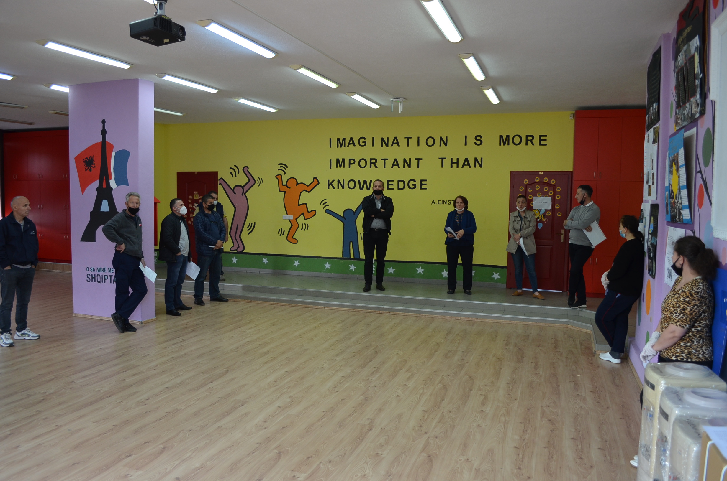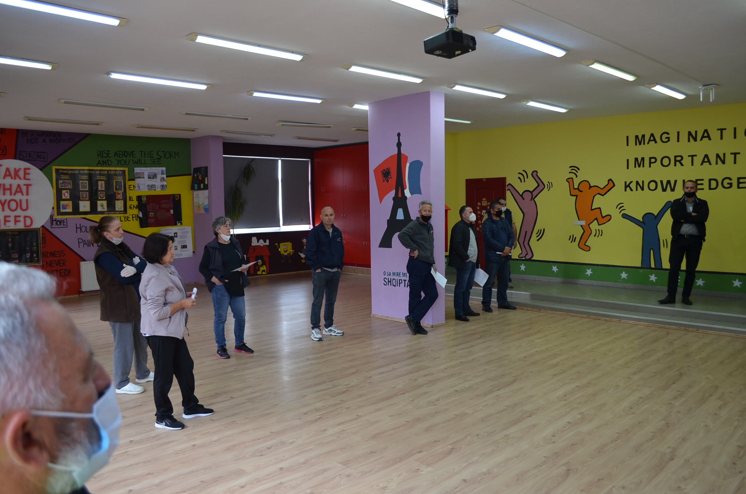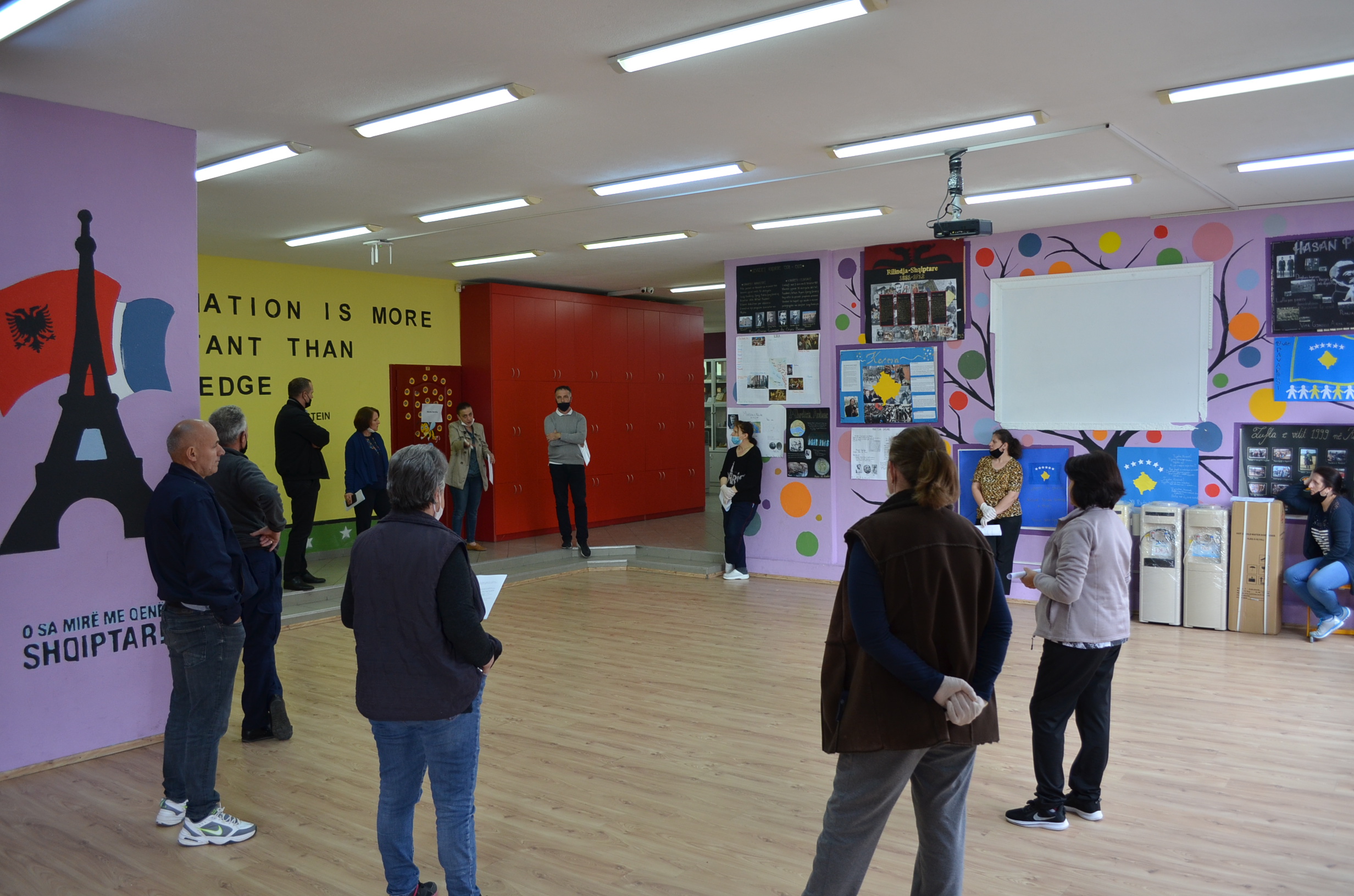 Në prag të tremujorit të mësimdhënies online, larg bankave të shkollës, shoqërisë e mësimdhënësve nxënësit e klasave të nënta të hënën, më 8 qershor do të fillojnë përgatitjet për testin e arritshmërisë nën masat kundër COVID – 19. Sot, në të gjitha ambientet e shkollës u bënë përgatitjet për parandalim dhe mbrojtje nga Coronavirusi. Stafi teknik morën udhëzime të detajuara nga infermierja e shkollës, si koordinatore e COVID – 19 në shkollë, për të gjitha masat dhe kujdesin që duhet ushtruar për përmbushjen e procedurave parandaluese. Nxënësit dhe stafi i shkollës, në mëngjesin e së hënës do t’u nënshtrohen të gjitha procedurave të kontrollit për dezinfektim dhe kujdes, por edhe do të kenë rastin të çmallen me njëri tjetrin krahas ushtrimeve që do të zhvillohen në 9 lëndë, para testit të arritshmërisë.