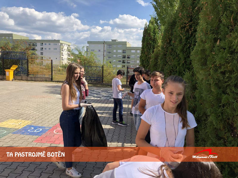 “Ta Pastrojmë Botën” është motoja e 15 shtatorit, Dita Botërore e Pastrimit, gjatë së cilës rreth 5% e popullsisë së botës do të marrë pjesë në aktivitetin e përbashkët, atë të pastrimit të mjediseve të ndryshme. Prandaj sot, edhe ne, të gjithë të mobilizuar morëm aksion të pastrojmë mjedisin përreth shkollës sonë. Kjo nuk është hera e parë që realizojmë aktivitete të tilla me qëllim që të rrisim aktivizmin e vëmendjen e nxënësve për mbrojtjen e mjedisit. “Let’s Do It World” është një aktivitet që nesër do të angazhojë mbi 200 shtete.
