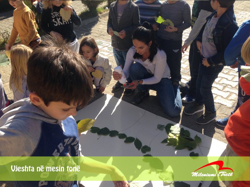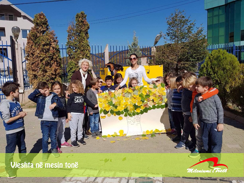 Në kuadër të temës mujore ” Vjeshta”, prindja e shkollës Blerta Surroi punoi pemën me gjethe së bashku me nxënësit e klasës I-1.